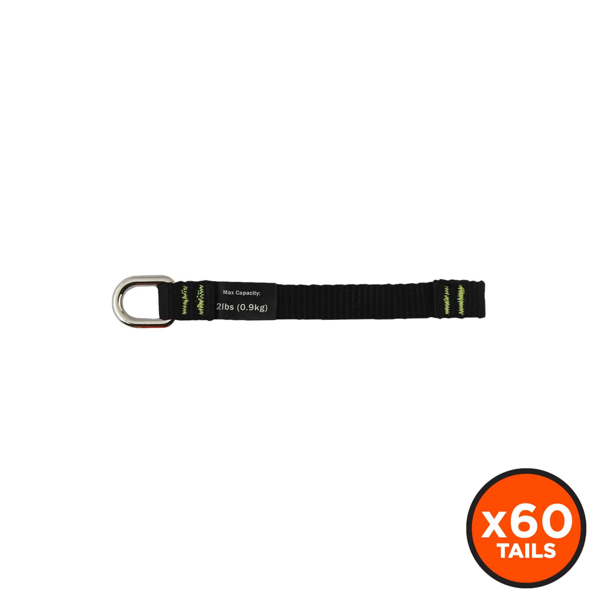 Built for secure attachment to tools, this anchor attachment is made of heavy-duty nylon webbing and high-tensile strength nylon thread. Both ends feature a reinforced double stitch web catch for a more durable stop. Once the base of the tail is securely taped to the tool or anchor point, the plated D-ring acts as a captive hole for tethering tool lanyards.