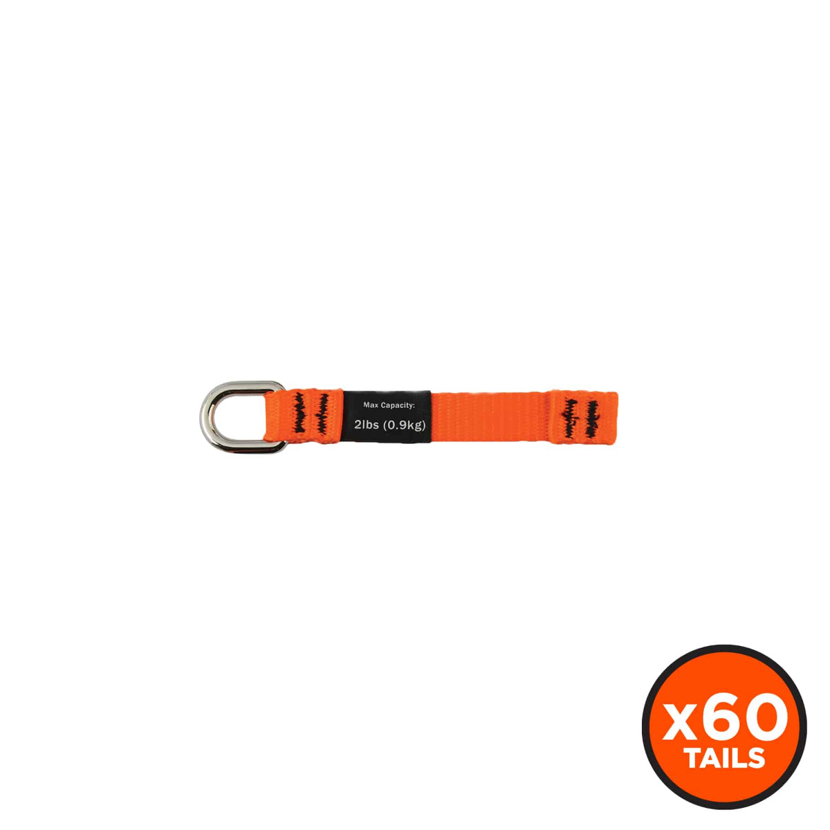 Built for secure attachment to tools, this anchor attachment is made of heavy-duty nylon webbing and high-tensile strength nylon thread. Both ends feature a reinforced double stitch web catch for a more durable stop. Once the base of the tail is securely taped to the tool or anchor point, the plated D-ring acts as a captive hole for tethering tool lanyards.